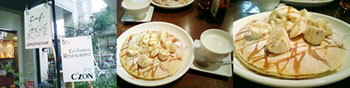 けっこう広いカフェレストランで、ランチメニューを見ていた私達だったけど、パンケーキメニューに惹かれてしまい、2人とも同じパンケーキをチョイス