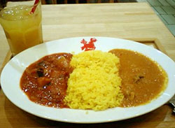 とても美味しかった!!右がシーフードで甘め。左が夏野菜のカレーでトマトベースのスパイシーで満足